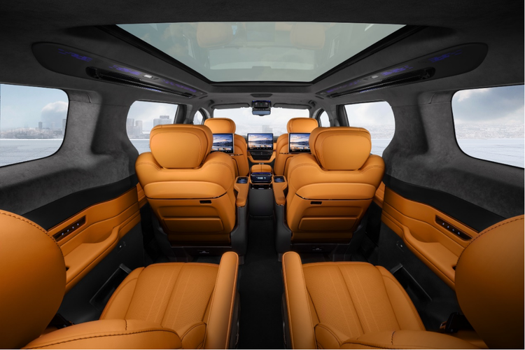 腾势D9全系标配“天神之眼”高阶智驾系统,含激光雷达与32个传感器,支持城市领航、代客泊车等功能。内饰虽未采用顶级材质,但配置实用性更强:全车多屏交互(中控+副驾+后排)、车载冰箱、KTV系统等,2025款还优化了空气动力学设计。