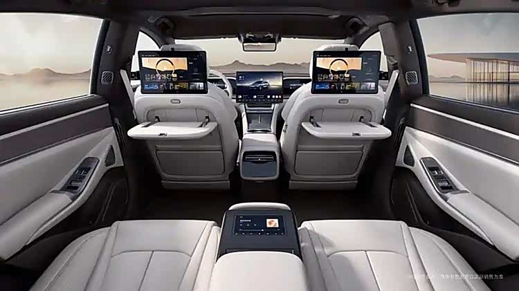 走进腾势N9的车内,其独特的内饰设计令人眼前一亮。三屏联动的设计思路,中央超大方形显示屏尤为抢眼,两侧显示屏与中控台无缝衔接,科技氛围浓厚。中控台细节处理精致,选材考究,手感细腻。座椅采用2+2+2的六座布局,后座配备液晶显示屏和小桌板,仿佛将“移动客厅”搬入了车内。内饰颜色方面,铂檀灰彰显低调奢华,云锦米则带来温馨舒适之感,两者皆令人倾心。