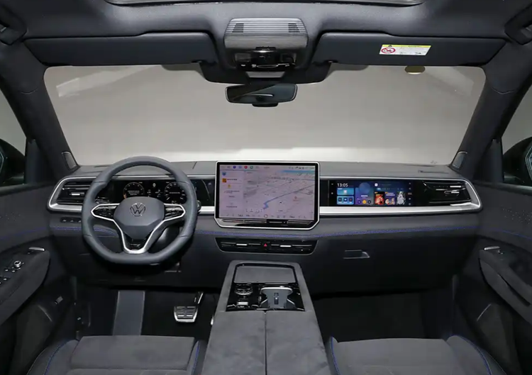 走进车内,途昂Pro的内部装饰和空间设计同样令人惊艳。高配版本采用了翻毛皮材料,手感细腻且档次高。中控区域装备了15英寸的2K悬浮式液晶显示屏和11.6英寸的副驾娱乐屏,让驾驶者和乘客在旅途中都能享受到极致的娱乐体验。同时,10.3英寸的全液晶仪表具备AR实景导航和HUD抬头显示功能,使得驾驶更加便捷、安全。