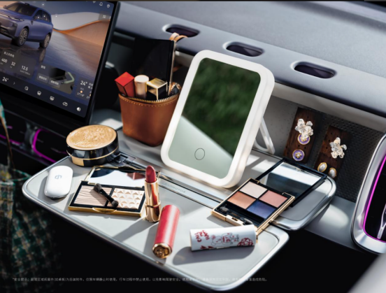 零跑B10的副驾也是大有乾坤,布置了很多拓展孔位,这个思路就有点像我们家装用到的洞洞板,为整车赋予了非常强的灵活DIY的能力,你可以在上面挂摆件装点你的内饰,接个支架放手机平板刷视频追剧,甚至接一个折叠小桌板当个梳妆台或者午饭餐桌也不错,年轻人尤其是精致女生们肯定会喜欢这样的设计。