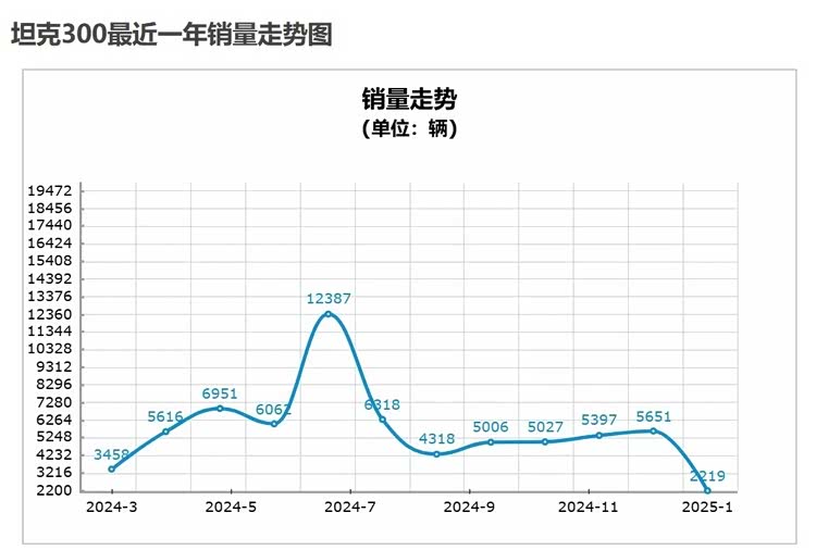 2024年坦克300的销量再度下滑,从2023年的9.54万辆下滑到7.35万辆,而这已经是坦克300连续两年出现销量下滑,从月销破万到几千辆,表明在新能源大势所趋的背景下,在20万元级的价格区间中,已经难有燃油车型向上的突破。