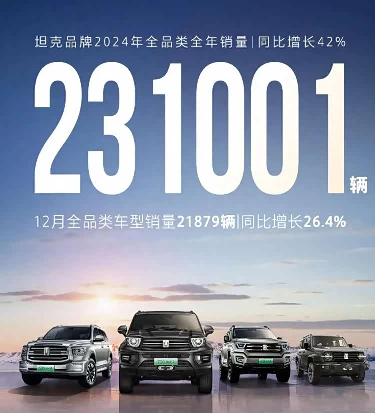 根据乘联会的销量统计,在最具有代表性的硬派越野车市场,坦克品牌凭借完整的车型序列狂揽23万辆销量,同比增长42%,除了坦克之外,北京越野和方程豹这些国产品牌也都收获颇丰。