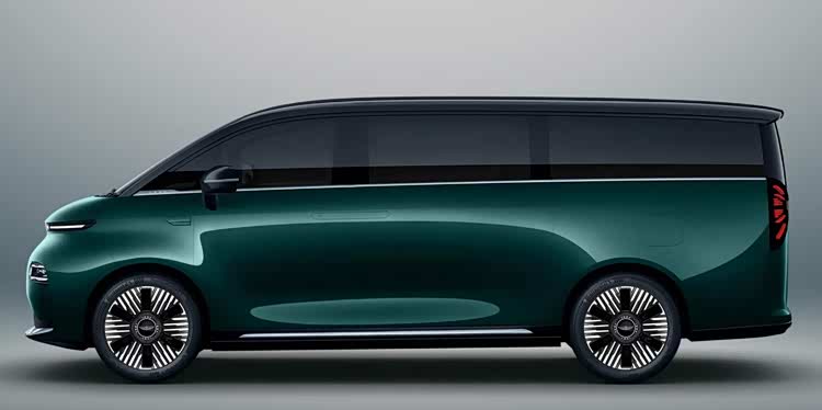 侧面看,车身几乎没有多余的线条,干净利落。尾箱也是很平直的线条。这款车定位是中大型高端纯电MPV,