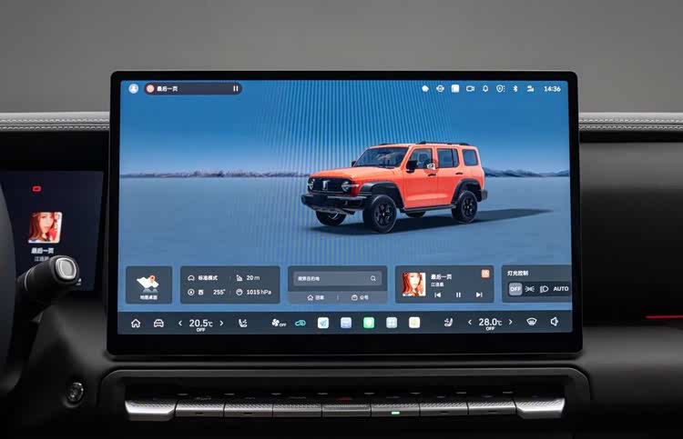 实体按键控制区也重新布置了,中间的前后差速锁和坦克掉头等按键更大,两侧的驾驶模式与四驱模式,改为小拨杆控制,看起来更精致,操作也更方便。