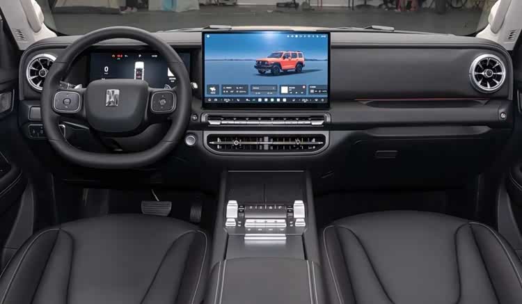 内饰变化比较大,换装了全新的双幅式平底方向盘,对于感知转向角度应该会更有利。挡位也升级为比较流行的怀挡式电子挡位,操作动作更简单顺手。车厢用料也更有档次感,中控台的台面增加了大面积皮面覆盖,副驾驶前方还新增了TANK 300的标识。