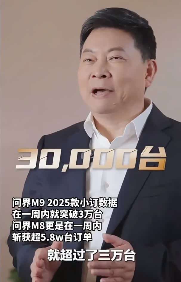 余承东最近辟谣与刘亦菲的花边新闻后,在媒体镜头前还是那么神采奕奕,因为问界新M9一周收下3万台的小定,问界M8一周小定超5.8万台。不过,不排除小定数据存在一定水分的可能(5000定金抵10000购车款)。