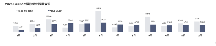 在欧洲市场沃尔沃EX30的销量一路攀升全球销量破10万台,更是比肩特拉斯Model 3,甚至在刚刚过去的2024年(4、5、7、8、10月)实现了反超。那么小编选取了价格相近指导价23.28万的沃尔沃EX302025款 后驱长续航版Ultra和指导价23.55万的特拉斯Model 32025款 后轮驱动版进行对比,看看现在哪台车更值得大家购买呢?