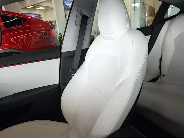 特拉斯Model 3采用仿皮材质的桶式座椅,整个座椅的人体工程学设