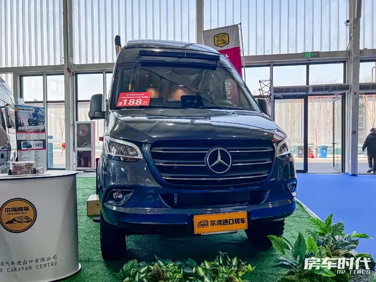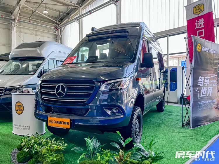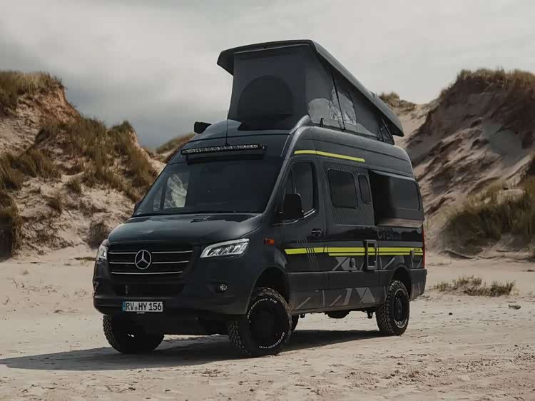 整车基于奔驰斯宾特底盘打造,搭载2.0T柴油发动机,匹配9速自动变速箱,最大功率140kW,这一数据在目前国内房车市场可见的宽体轻客车型里算是最大的之一了。本车最大核载人数4人,车辆外观尺寸为5930×2060×2850mm,车内高达到了1920mm,按照中国成年人身高统计数据显示目前我国男性、女性综合身高超过190的仅占0.06%左右,也就是说大部分成年人其实都能在车内直立不感到拘束。轴距3665mm,实际拍摄的过程中可以看到车辆的接近角和离去角表现不错,搭配全地形胎,这意味着这款车的通过性还是有所保证的,也能一定程度应对简单的非铺装路面。本车蓝牌C照可驾驶。当然,相对高昂的售价其实很大程度上来自于底盘,目前国内2.0T的斯宾特单一底盘的综合报价基本上也在百万级,由此可见这款底盘在国内市场还是具有一定认可度的。车顶带有升顶机构,可以得到一个额外的床铺。