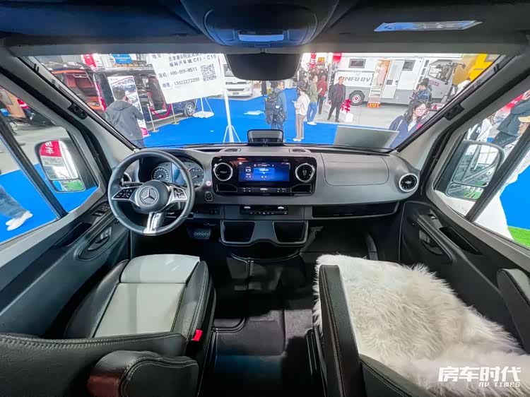 在驾驶方面,挡⻛玻璃有加热功能,防止冬天起雾,还配有主动距离助⼿、主动⻋道保持辅助、远光灯助⼿、盲点辅助,防抱死制动系统ABS、防滑调节ASR、电⼦制动力分配EBV和电⼦车身稳定程序 ESP等。车机系统方面搭载了奔驰多款乘用车搭载的MBUX 10.25多媒体系统,带后视摄像头、语⾳控制和触摸屏,还带有导航和智能⼿机集成功能。⽅向盘真⽪设计握持更舒适,也能更好匹配斯宾特的高价值。