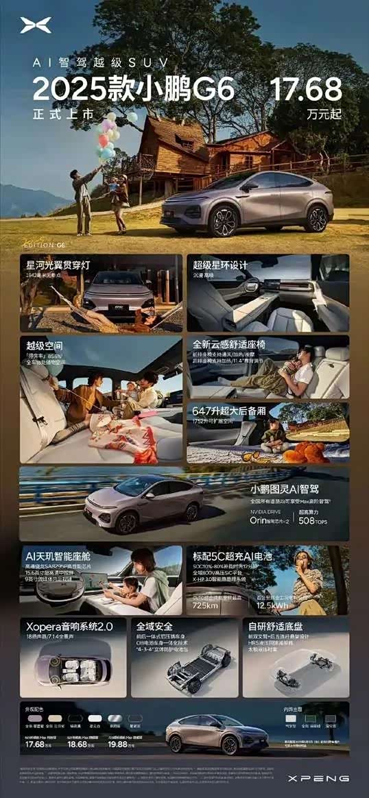 在智能电动车市场竞争白热化的当下,小鹏汽车通过G6与G9的双线突破,既夯实了主流市场的基盘,又展现出冲击高端领域的潜力。随着技术迭代加速与生态体系完善,这家以科技立命的企业,正在智能出行赛道上跑出独特的加速度。