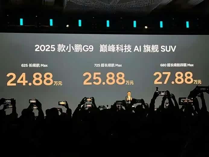 作为小鹏汽车旗下第四款量产车,2025款小鹏G9在智能SUV领域树立了新的标杆。新车共推出三款车型,售价区间为24.88-27.88万元,相比2024款车型26.39-35.99万元的售价,同样实现了大幅降价。