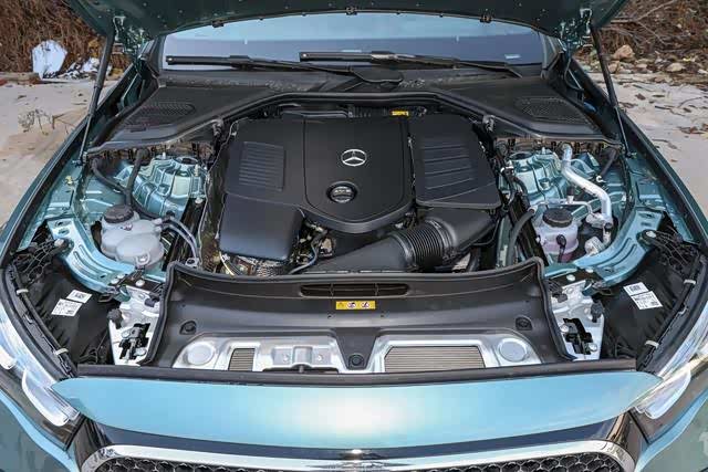 - 2.0T低功率发动机(E260L):最大功率150kW(204Ps)、最大扭矩320N·m,零百加速7.7秒(后驱)/8秒(四驱),最高车速233km/h(后驱)/230km/h(四驱),WLTC综合油耗6.15L/100km(后驱)和6.6L/100km(四驱)。