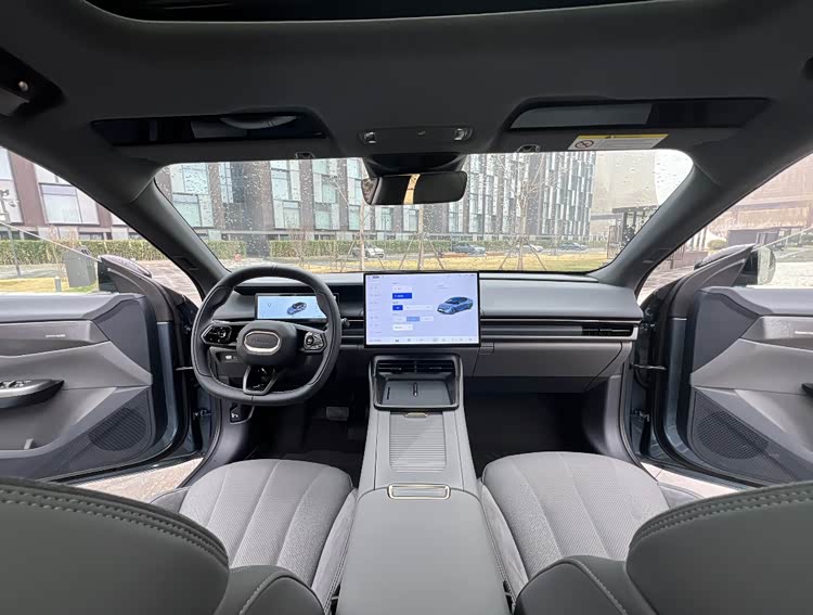 内饰彻底颠覆传统座舱逻辑,15.6英寸悬浮屏承包所有交互需求,8155芯片驱动的飞屏手势控制充满赛博朋克色彩,皮质方向盘与宽大座椅在极简设计中保留豪华温度。动力组合覆盖515-620km超长续航,实测9.6kWh/100km电耗堪称节能标杆,15分钟快充200km的补能效率直击用户痛点。