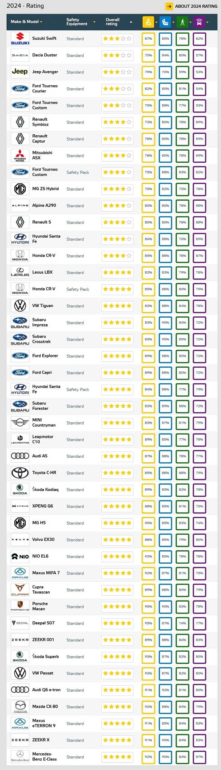 看完Euro NCAP 2024年只拿到三星评分的车,再来看看中国厂商车型的成绩。