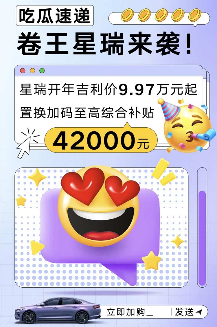 不论是这回的大叔买星瑞,还是2023年身边的95后小老弟也选择的星瑞,足以证明星瑞这款车一如既往的超高产品力,赢得上至60岁下到2、30岁年轻用户们的青睐。