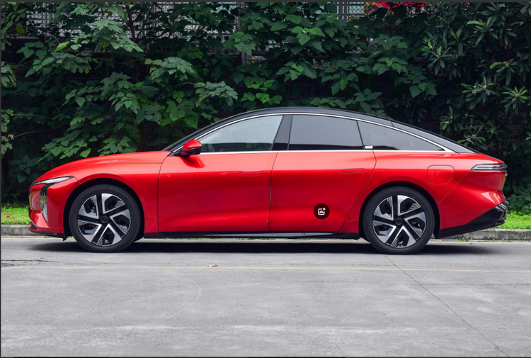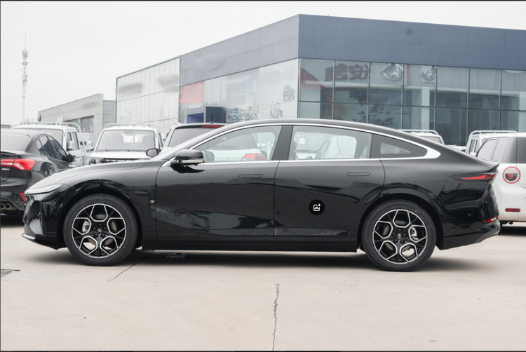 星海S7的侧面轮廓修长且动感。特别是3.65米一体化无拐点Y0曲线带来的优雅轿跑姿态,体现出不错的运动氛围。中间腰线造型圆润,搭配上隐藏式门把手以及19英寸的低风阻轮毂,带来了0.191Cd的风阻系数。要知道风阻系数每降低0.01Cd,行车功率则降低0.5kW,理论状态下续航提升5-8公里公里,降低的风阻系数对于续航有所帮助,这也是很多纯电车型都比较看重风阻系数的原因。