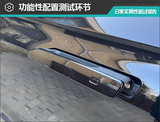 评测车配备了驾驶位无钥匙进入功能,仅支持遥控钥匙进入方式。携带遥控钥匙走到车旁车辆便可自动解锁,十分便捷。锁车时只需轻碰门把手外侧的“内凹处”,即可完成锁车,便利性较好。