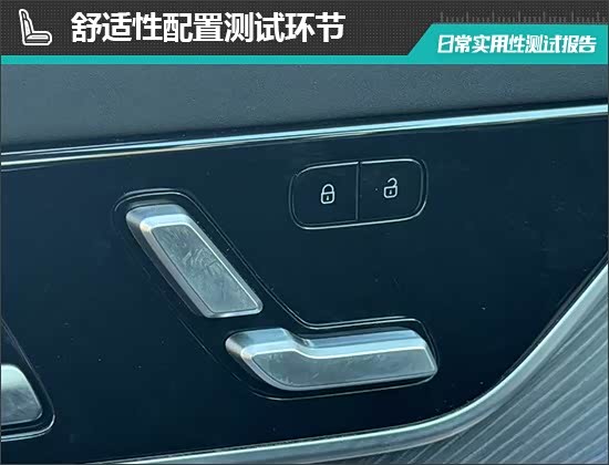 评测车的主/副驾驶座椅均支持电动调节,前排座椅支持加热、通风功能,整体表现可圈可点。此外,主驾驶座椅还配备座椅记忆功能,便利性不错。座椅各功能按键布局合理,日常操作起来比较顺手。