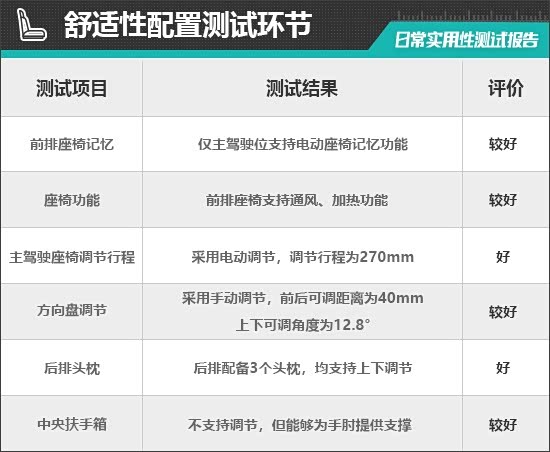 在主驾驶座椅测试中,评测车的主驾驶座椅最前端和最末端之间的距离为270mm,处于同级别上游水平。