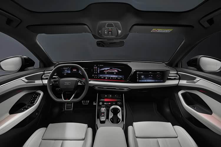 内饰方面,全新奥迪A6采用品牌最新的座舱设计理念,搭载由仪表屏与中控屏组成的一体式悬浮曲面屏、副驾驶娱乐屏等科技硬件,配搭圆形四幅式多功能方向盘与电子滑块样式的换挡机构等,不过最终呈现效果还需以官图为准。