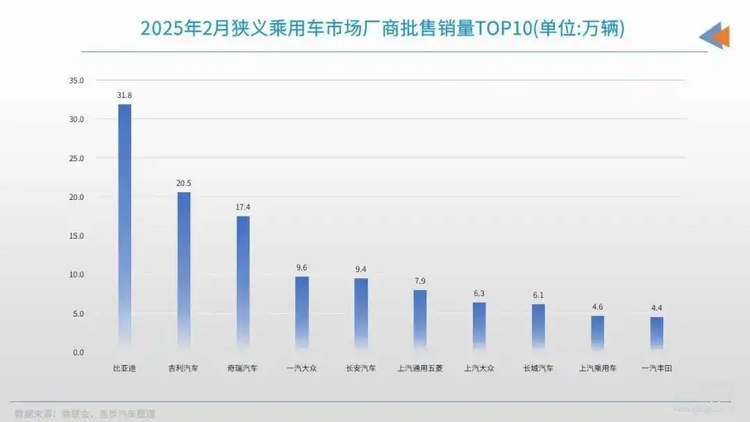 事实上,在新能源与智能化的聚变浪潮之下,合资车企正在经历突围的关键阶段。据乘联会统计数据显示,过去的2月全国乘用车厂商2月的批发销量为176.7万辆,同比增长33.8%,处于历年2月批售量的历史高位,其中头部自主车企凭借技术迭代与全球化布局持续扩张,而传统合资品牌则在转型迟缓中陷入增长瓶颈。