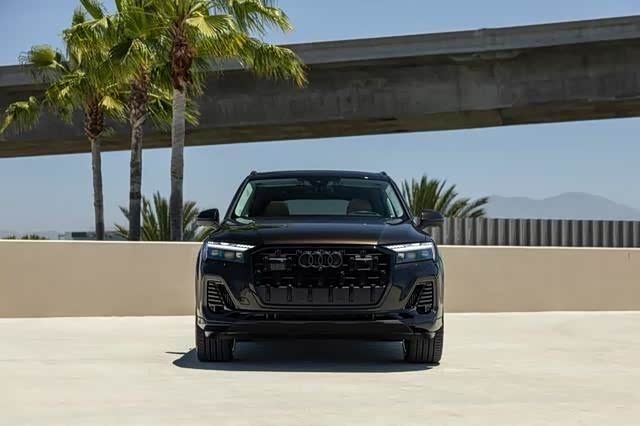 外观方面,奥迪Q7的外观设计堪称精妙绝伦,将豪华与运动风格完美融合。从极具辨识度的前脸,到流畅动感的侧身线条,再到凸显性能的车尾造型,无一不展现着奥迪精湛的工艺与设计美学。奥迪Q7前脸部分采用八边形的轮廓,内部使用大蜂窝状样式进行填充。大灯采用矩阵式布局,造型颇为犀利,远光灯光源还使用了LED。再配合“L”形日间行车灯,让这车第一眼看上去就气场十足,颜值方面也得到了显著提升。车身侧面,奥迪Q7整体造型流畅,硬朗的车身线条更加修长、动感。轮拱周围配有黑色护板,车顶配备行李架,再加上大尺寸轮毂,显得十分有力。无论身处何地,都能轻松吸引众人目光,满足不同消费者对颜值与格调的追求。尺寸方面,奥迪Q7车身长是5077mm、车宽是1970mm、车高是1715mm、轴距为3000mm。车尾部,奥迪Q7整体造型较为饱满,车身线条立体,看上去肌肉感十足。尾灯加入了熏黑设计,配合双边共两出排气布局,进一步彰显运动感。左侧下方的"45TFSI"标识和右侧增加"quattro"字样,以此来表明其身份。