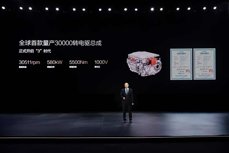 第三,针对电动机高速性能弱点,比亚迪带来全球首款量产3万转电机。