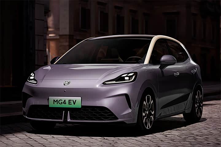 另外在外观细节方面,改款 MG4 EV 主打紫色配色,车头除明显更为圆润外,两侧配有 L 型状头灯组,车顶则以白色 A 柱配色,搭配全景玻璃车顶示人。车侧则将原先的后侧充电孔、改为移至驾驶座侧前方叶子钣处,改款前的前门 3 角窗设计则保留,但车侧改为两道摺线示人,取销过往的下方饰板,C 柱处也不再有现款的悬浮式视觉,改为较为传统的钣件涂装 C 柱,车尾则是有贯穿式尾灯,并搭配 MG 厂徽智中,两侧导入类似 Cyberster 双门跑车箭矢型 LED 尾灯。
