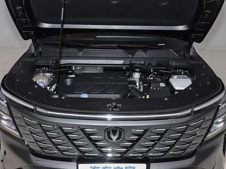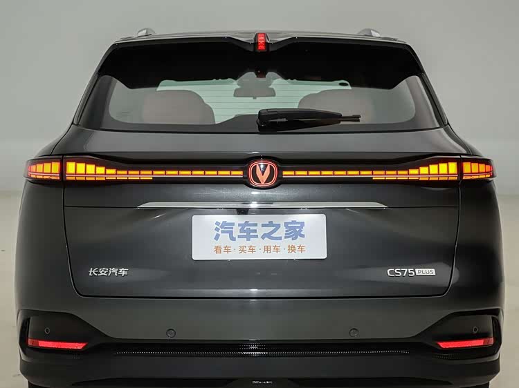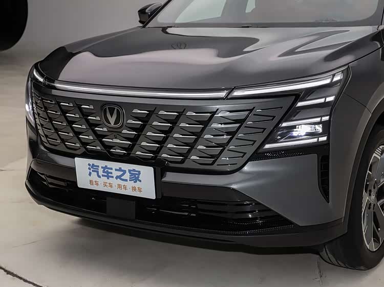 长安CS75 PLUS 1.5T鲸悦版在外观造型上采纳了纵横万象的设计哲学,赋予车辆独特的视觉冲击力。其前部设计采用了家族式的晨光涟漪无边界格栅,特别是参数化鳞片阵列呈现波光粼粼的视觉效果。此外,城市天际线贯穿式前大灯支持128色动态迎宾灯语,与横向排列的日间行车灯和前格栅的水平缝隙无缝衔接,营造出一种强烈的横向延伸感,即“横”之境。中央的V型Logo犹如点睛之笔,为整个前脸设计增添了一抹生动。