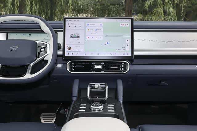 内饰设计部分,捷途山海T2四驱荒野版同样延续了在售车型的内饰布局方案,其中控台区域搭载了四幅式平底方向盘(支持加热)、10.25英寸液晶仪表、15.6英寸悬浮式中控屏。同时,新车继续使用了电子换挡机构。