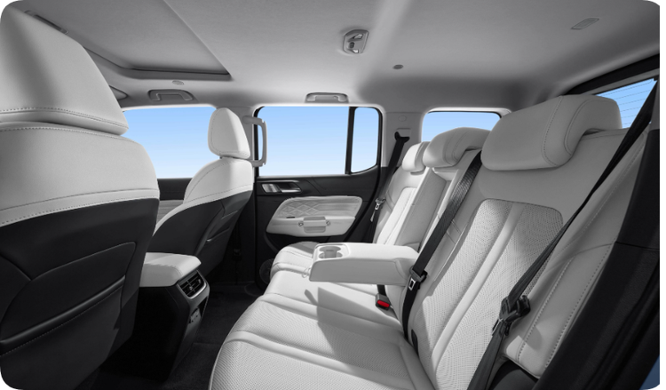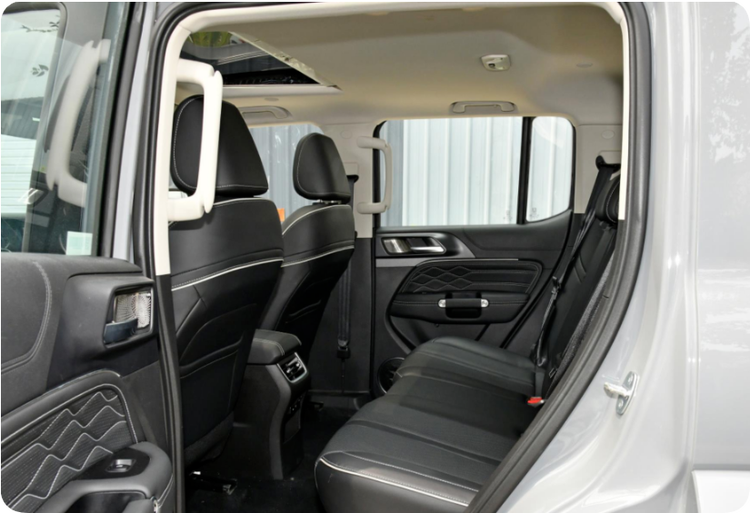 在座椅方面,坦克300新能源采用仿皮革或真皮材料,以不同的配置包裹座椅,在整体座椅支撑方面更加出色,面料的选择也更加精致;全系支持多方向电动座椅调节/加热/按摩功能,第二排座椅靠背可调节,后排座椅支持比例折叠,并配有前后扶手和后杯架。