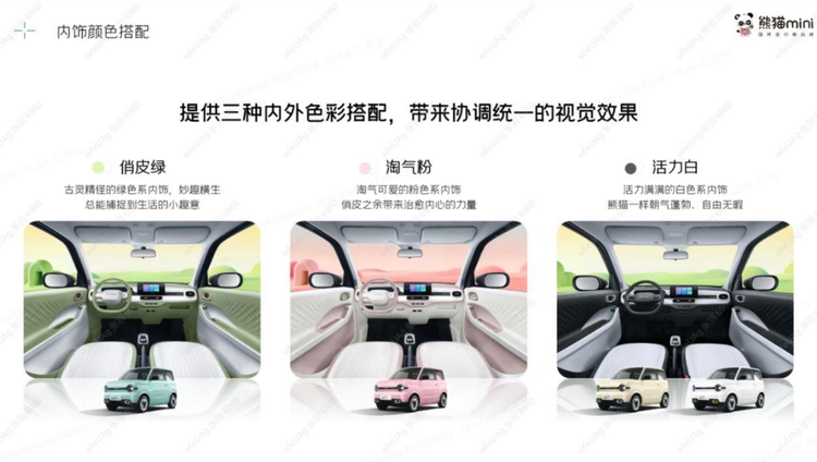 内饰看齐25款熊猫卡丁、熊猫骑士,并提供俏皮绿、淘气粉、活力白三种风格。更为简洁的中控台上通过白色饰板贯穿,8英寸的悬浮式中控屏没有缺席,不过将改为椭圆形全液晶仪表盘,随之空调出风口也换为椭圆样式,并加入镀铬饰条点缀,同时还简化了物理按键,给人感觉更有时尚精致气息。另外还换装了全新的双幅式多功能方向盘,并在中控台左侧增加手机支架接口。