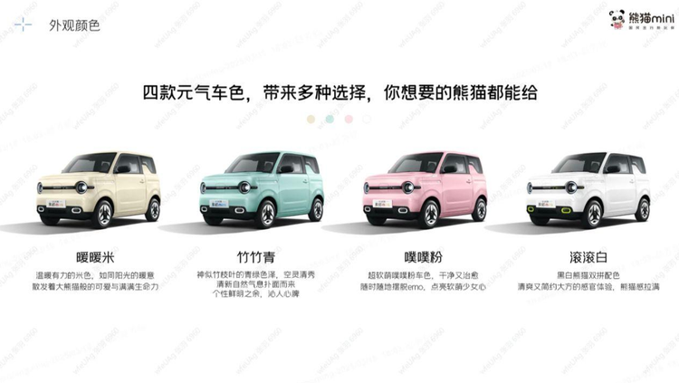 另据曝光的配置信息来看,熊猫mini元气熊还将配备双安全气囊、ESP车身稳定控制系统、带轨迹线倒车影像、坡道辅助、激光焊接车顶、无感启动、手机无线互联、手机蓝牙钥匙、远程控制、语音控制等配置。动力上或继续搭载最大功率为30kW(41马力)的后驱电机,不过续航里程将增加至210km(现款200km),而22kW直流快充也没有缺席,并拥有4m超小转弯半径。