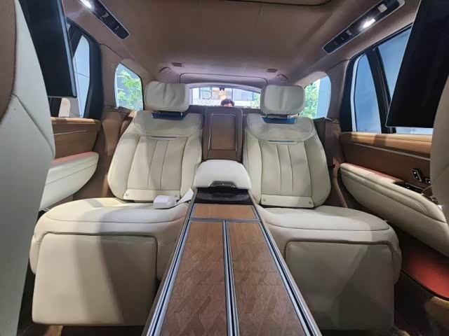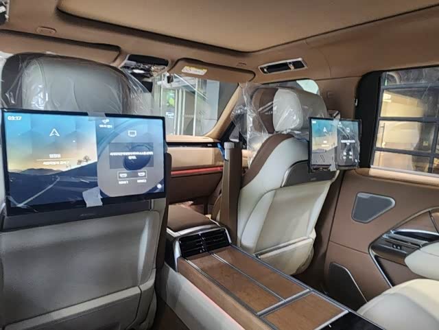 配置:四座,双拼内饰,全景,二排豪华座椅带腿拖,环影,电吸,雷测,抬显,13.7寸大屏,冰箱,中后双差,后排娱乐,前后座椅加热通风按摩,前后挡风玻璃加热,二排电动遮阳窗,脚感电尾,二代地形反馈,1700W音响,全尺寸备胎,脚感电尾,电动踏板,黑色卡钳,黑撞顶,黑曜外观包,棕色皮顶,双透镜数字大灯,流媒体后视镜 SV奢雅主题外观套件,23“10辐亮光深灰+纳尔维克黑钻石切割轮毂 ,SV奢雅主题内饰(天然浅色鸡翅木纹理饰板+镶饰)琥珀褐色内饰+扩展真皮内饰 ,琥珀褐色真皮顶蓬,琥珀褐色地毯+豪华脚垫,前排SV琥珀褐色奢华近苯胺座椅,后排SV浅米色奢华半苯胺真皮豪华行政座椅 ,多功能行李箱地板