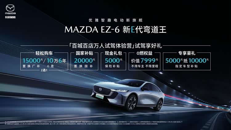 电动化时代,马自达对安全性能的追求毫不妥协。MAZDA EZ-6的车体采用了“7横5纵的笼式结构”,340MPa以上硬度钢材占比超过86%,车顶采用2,000MPa横梁加强件,车门再内置6根1,500Mpa的防撞钢梁。在行业首次“货车横向夹击叠加刮底挑战”挑战中,MAZDA EZ-6在大货车剧烈撞击后,驾驶舱结构依然保持了完整、A、B、C柱未发生弯折变形,车门亦可正常打开。目前,购车可享受至高40,000元补贴(15,000元置换厂补+20,000元置换国补+5,000元保险补贴)、100,000元尾款可享6年0息(和置换厂补二选一),购指定车型更可享补贴5,000抵10,000元,还可享价值7,999元不限车主、不限里程终身零燃权益。