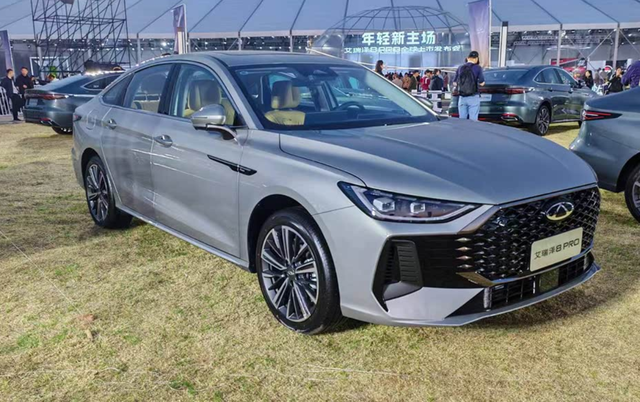 艾瑞泽8 PRO外形采用了全新家族设计,外形犀利时尚,约略有点奥迪A4的感受,尤其前脸采用了八边形大嘴,和奥迪A4进气口设计不约而同。不过艾瑞泽8 PRO整个前脸都采用了熏黑设计,两边的导流槽尺寸和造型也夸张,气质就更为凶猛。新车侧面轮廓舒展流畅,一根凌厉腰线贯穿全车,带来更强的运动气质。