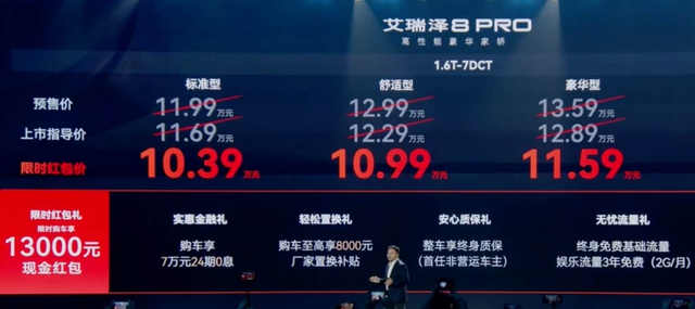 3月22日,奇瑞 艾瑞泽8 PRO(参数|询价)正式上市,共推出4款车型,上市指导价区间为11.69-13.29万元,限时红包价区间为10.39-11.99万元。