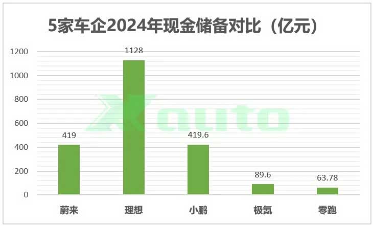 2024年期末,现金储备达到1128亿元,远高于另外4家车企。