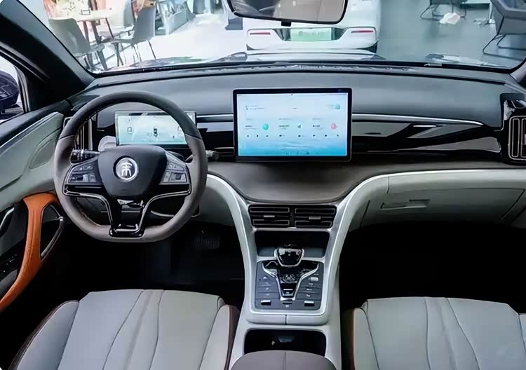 比亚迪宋Pro DM-i的内饰设计同样令人印象深刻。一眼望去,它的内部造型给人一种稳健而保守的感觉,T字中控台区区守规,仿佛每一处设计都恰到好处而不张扬。然而,烤漆饰板和软质材料的大量运用,为其增添了一种精致质感。虽然标配的8.8英寸仪表盘和最大可达12.8英寸的悬浮大屏并没有过于强调科技感,但却足以满足日常使用需求。