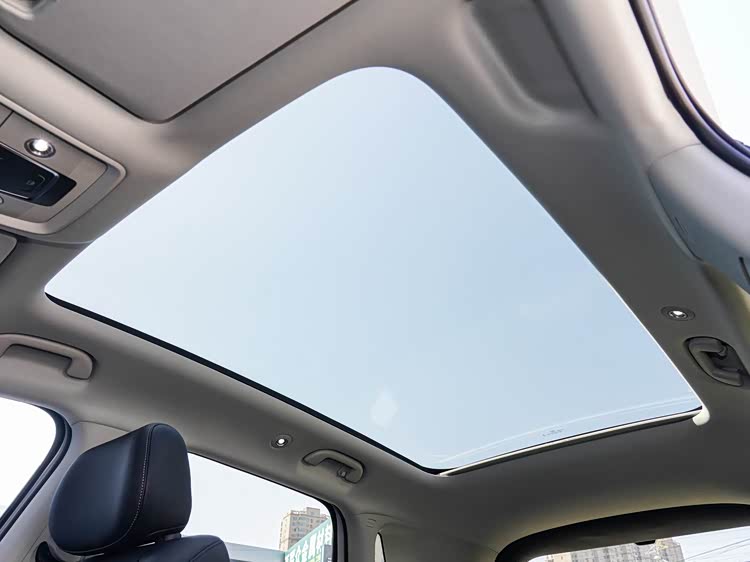 中高配车型带有全景天幕+电动遮阳帘,这个搭配还不错,不用担心漏水,也不怕被晒。