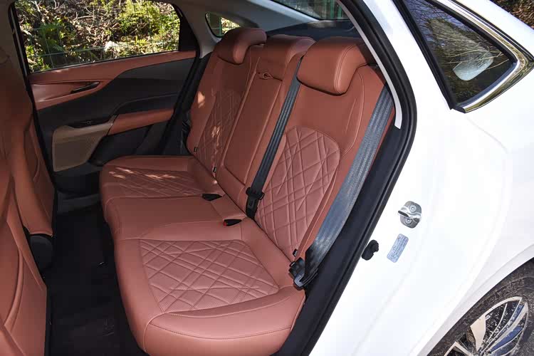 本人身高170cm体验下来,前排座椅调至最低且合适驾驶坐姿后,头部距离车顶约有一拳两指余量(含天窗下沿高度),方向盘支持前后+上下四向调节,较易找到舒适坐姿。主驾座椅坐垫长度490mm(含可伸缩腿托),对大腿承托较为到位,腰部支撑中规中矩,长时间驾驶建议加装腰靠。 保持前排座椅位置不变进入后排,膝部空间约为两拳半(约230mm),头部空间受车顶线条影响缩减至四指(约70mm)。