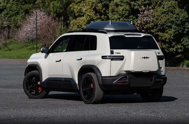 在外观设计上,方程豹钛3展现出了一种运动和前卫的设计风格,更偏向于年轻化。其中央格栅是由黑色格栅构成的,而大灯组则是一体式的。日间行车灯采用了上下两段式的设计,并且大灯组还经过了黑化处理。前包围的造型相当硬核,一些细节设计也透露出一丝野性。无人机版本的轮毂采用了黑色涂装,刹车卡钳则使用了红色涂装。车尾的小书包也非常前卫,符合其自身的调性。在车身尺寸方面,长宽高分别是4605x1900x1720毫米,轴距则是2745毫米。