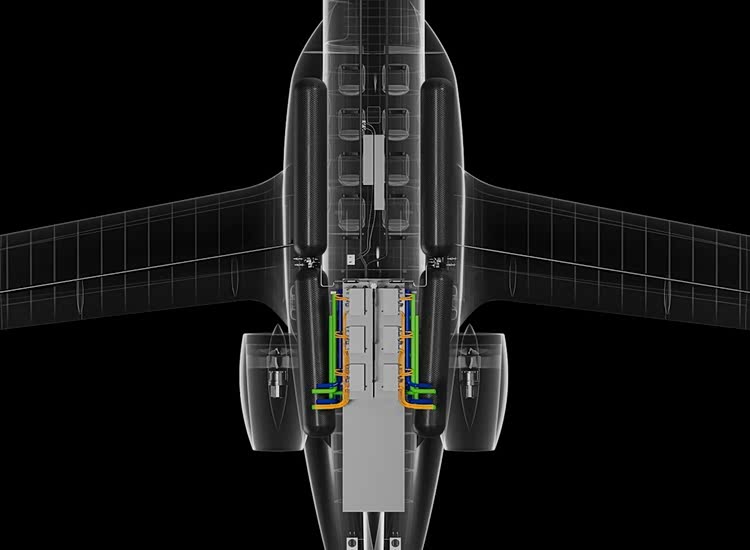 Beyond Aero 这家公司清楚地认识到了这种差异,并坚信燃料电池和储氢罐将成为未来飞机的核心部件。因此,他们采用了在机翼和机身各处安装 6 个 700bar 的储氢罐的方式。(这些储氢罐在结构上与 Nexo 上搭载的储氢罐几乎没有区别。)据说,给氢能源飞机充一次氢大约需要 30 到 40 分钟,这与燃料电池电动汽车(FCEV)的情况类似,与实际飞机的燃料补给时间相比,并没有太大差异。而且该公司还表示,通过总共六个燃料电池堆可产生 2400 千瓦的电力。