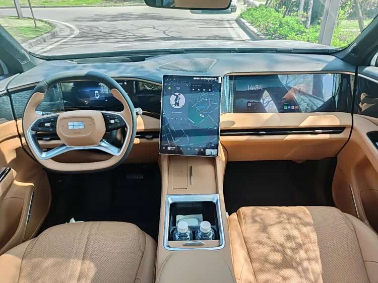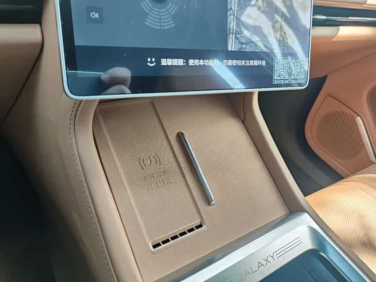 在内饰方面,银河L7 EM-i标配了一套由10.25英寸仪表盘、13.2英寸中控屏和16.2英寸副驾娱乐屏组成的显示屏组合,搭载了Flyme Auto智能车机系统,内置骁龙8155芯片。中控系统是银河L7 EM-i的一大核心亮点,采用原生的Flyme Auto车机,界面精美,左右滑就可切换壁纸,比较常用的胎压,音乐,空调等等都设置在卡片里面,需要用的时候可以一键触达,还有常用APP爱奇艺,QO音乐,高德750版地图,带红路灯读秒功能等等,并且可以实现三联动,科技感很强。此外,有需要的朋友还可选装25.6英寸的AR HUD显示屏,尝试四屏联动。并且银河L7 EM-i搭载的11扬声器Infinity音响、香氛系统和负离子发生器,也给人很好的乘坐驾驶环境。