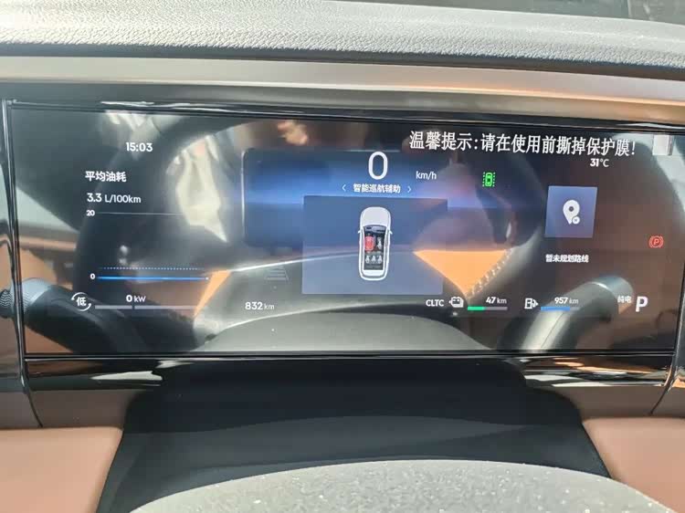 我们本次路线从吉利银河新能源体验中心-成都西物店出发,到天府芙蓉园再返回,总路程17公里,全程开着空调,并中途停车模拟上下班通勤堵车路况。可以看到我们出发车辆里程数为815km,百公里油耗3.4L,结束时车辆里程数为832km,百公里油耗3.3L。从数据来看,抛开空调和停车等待的油耗,我们行程的真实油耗应该是低于3.3L/百公里。