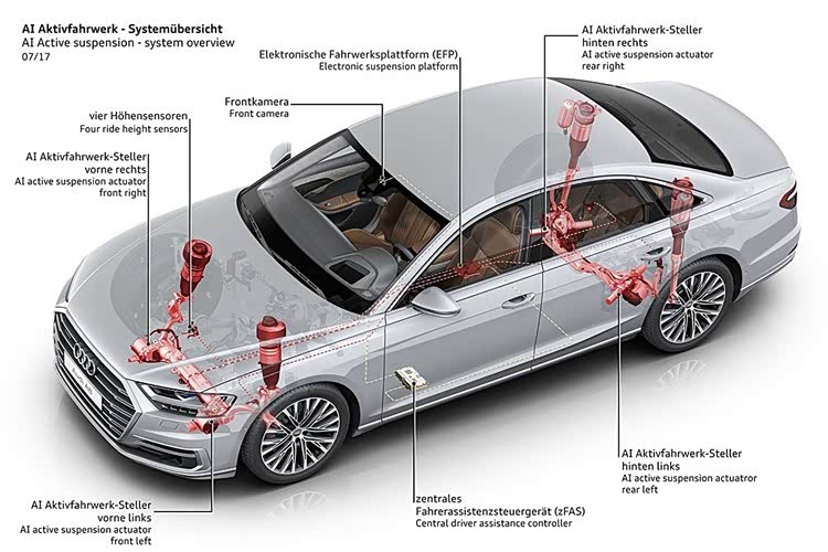 另外值得一提的是,奥迪A8、保时捷Panamera等旗舰车上应用了一种电子主动防倾杆系统,其实和小米的思路有些类似,只不过后者做得更彻底。