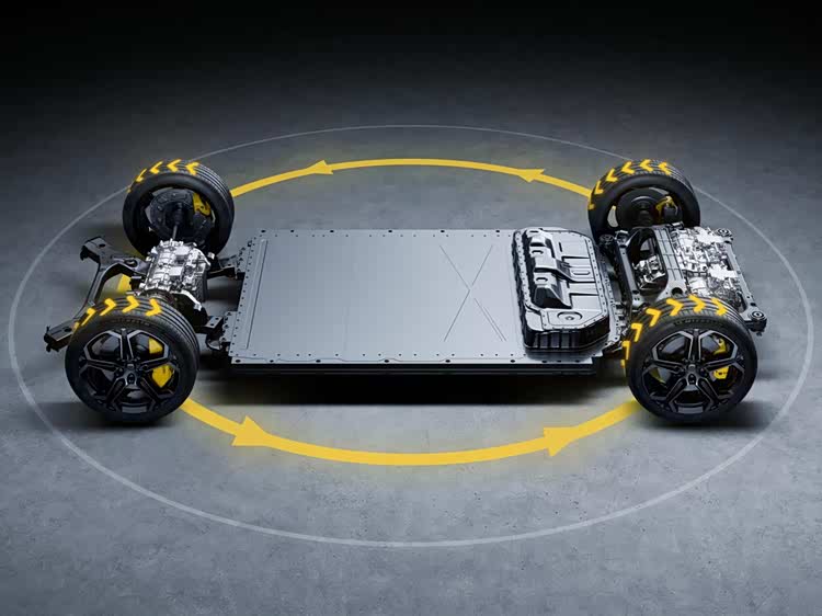 当然,“四电机”方案可不单单是性能更强而已,因为每一个车轮都有一个电机独立负责,所以四个车轮的动力输出是完全解耦的,矢量四驱是基本操作。另外,不光速度高度可调,连正反转也一样,所以,这种方案可以让车辆轻松实现原地掉头、圆规掉头,以及完全违背常理的主动泊车功能。