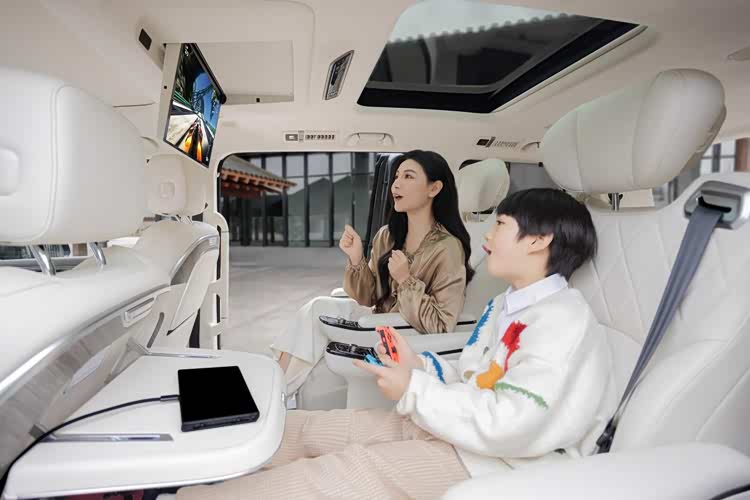 因为是周末去看车,带着孩子和老婆去的,看到高山的内饰颜色、座椅按摩、大电视,还能躺着看,加上那个高清的音响,真感觉这个智能化的新能源车真好,全家人一起出去,露营啊,烧烤啊,都可以,还有对外放电功能也是标配;