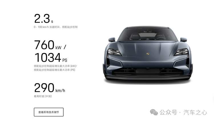 保时捷官网里赫然陈列出他们引以为豪的三个数据,百公里加速 2.3 秒,最大功率 1034PS,最高时速 290km/h。